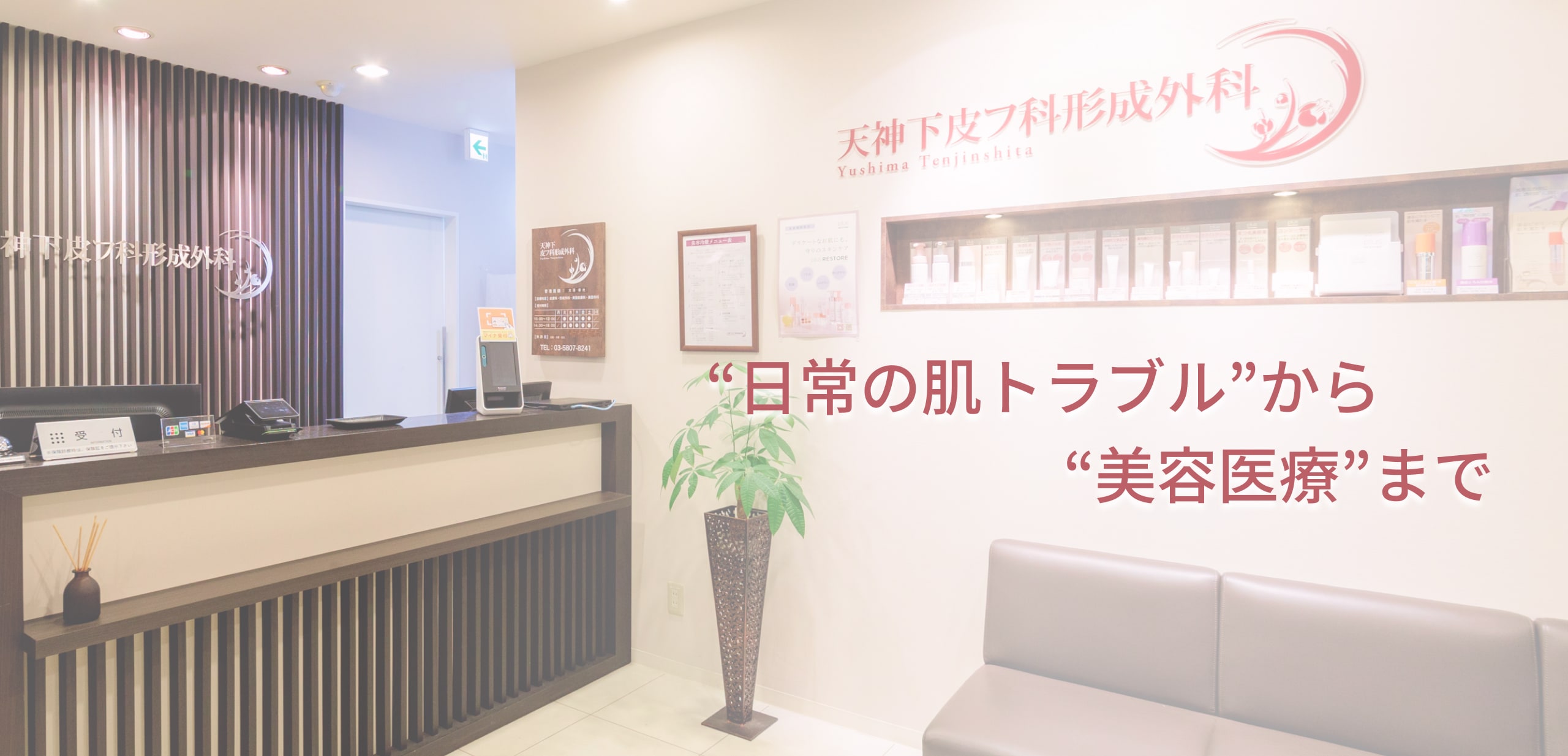 天神下皮フ科形成外科は、2012年、湯島天神のお膝元である湯島駅徒歩2分の場所に オープンしました。