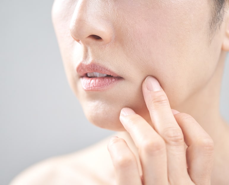 ヒアルロン酸は体内で作られる成分です。非動物由来で生産したヒアルロン酸注入剤を注入することで、ボリュームをもたせ、しわを目立たなくします。効果は注射直後から実感し、半年~1年で、注入したヒアルロン酸は徐々に吸収され消えていきます。
